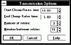 Если вы пользуетесь международной связью, вы можете захотеть передать факсимильное сообщение по самому дешевому тарифу. Для этого переведите переключатель "Transmission Time" в положение "Cheap Rates". Нажмите кнопку "Options", расположенную в группе "Transmission Time". На экране появится диалоговая панель "Transmission Options" (см. рис. 4.25).
